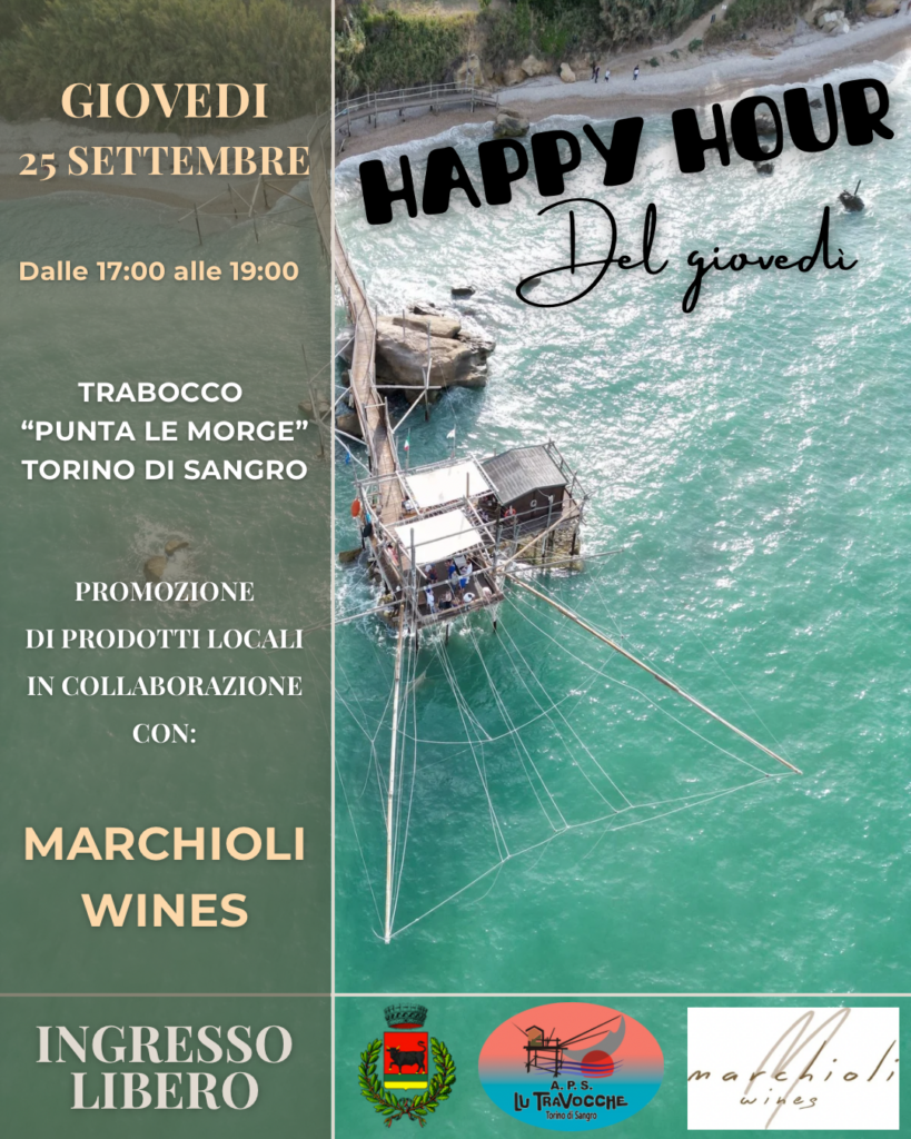 Giovedì 25 settembre un’altro appuntamento targato “a.p.s. Lu Travocche” Happy Hour in compagnia di Gianluca della cantina “Marchioli Wines” di Casalbordino dalle 18:00 alle 19:00. Saremo aperti dalle 17:00 e potrete assistere e partecipare anche insieme ai più piccini alla pesca con la grande rete (condizioni meteo marine permettendo). Gli eventi del trabocco purtroppo sono […]
